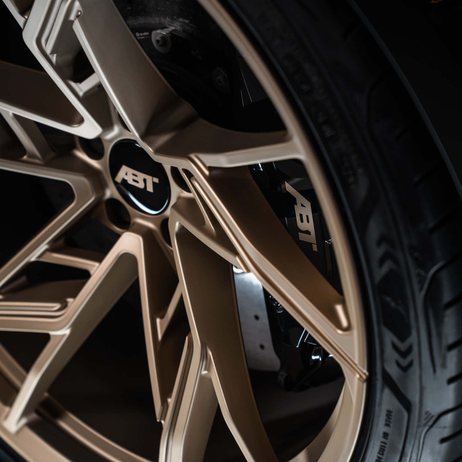 A very special highlight are the ABT HIGH PERFORMANCE IR22 forged wheels in satin gold, fitted with GOODYEAR Eagle F1 SuperSport tyres in 295/30ZR22, which extend the colour scheme right down to the road surface and thus effectively complete the neodymium lighting display.