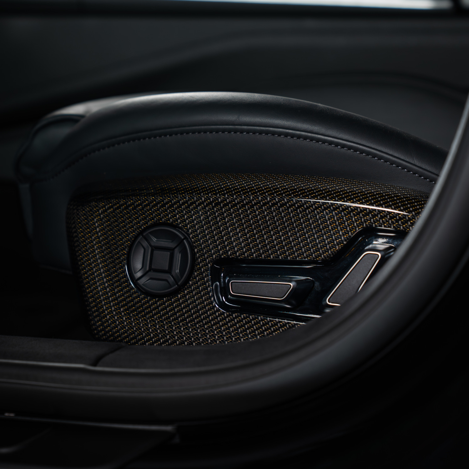 Optionally available dashboard trim and seat frame trim in glossy visible carbon with an unusual neodymium particle pattern carry the colour concept of the exterior into the interior – subtle golden accents that round off the overall look without being obtrusive.