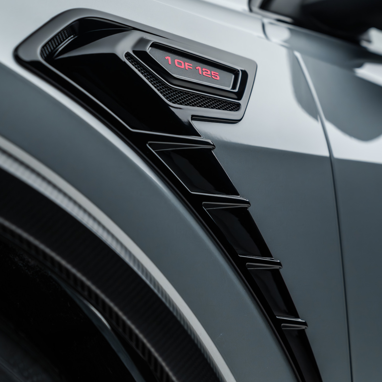 The further exterior refinement also presents itself as a harmonious synthesis of form and function. Elegant carbon components in a matt finish, from the striking front lip and the typical Legacy Edition bonnet inserts to the aerodynamically optimised rear wing, underline the athletic character of this exceptional SUV. Every detail has been manufactured with the utmost precision and ensures a perfect balance between sportiness and elegance.