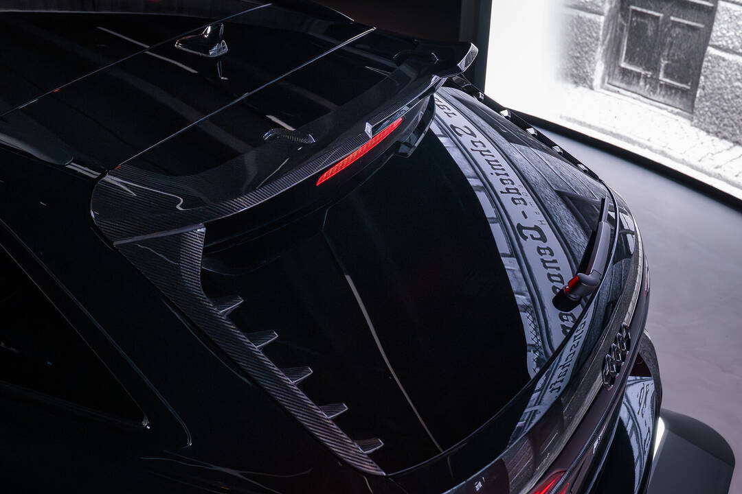 The ABT wheel arch vents at the front carry the exclusive emblem badge "RS6-LE 800". Mirror cap toppers, side skirts with decorative inlays, a rear apron insert with RS6-LE emblem badge, rear apron toppers, a decorative strut, and the ABT rear wing with aeroblades complete the exterior.
