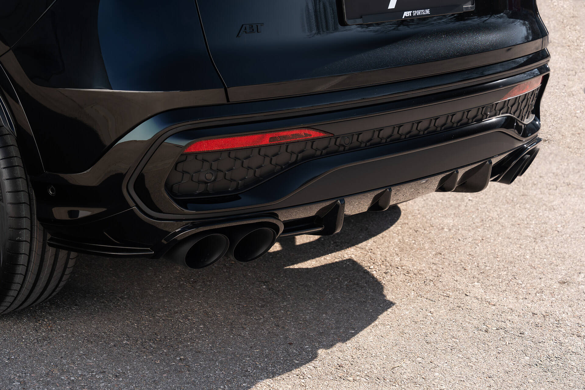 Four ABT exhaust tips in matte black stainless steel with a diameter of 102 millimeters make a clear statement at the rear and visually complete the rear view. They underline the sporting character of the vehicle and make the increased performance tangible even at a glance.
