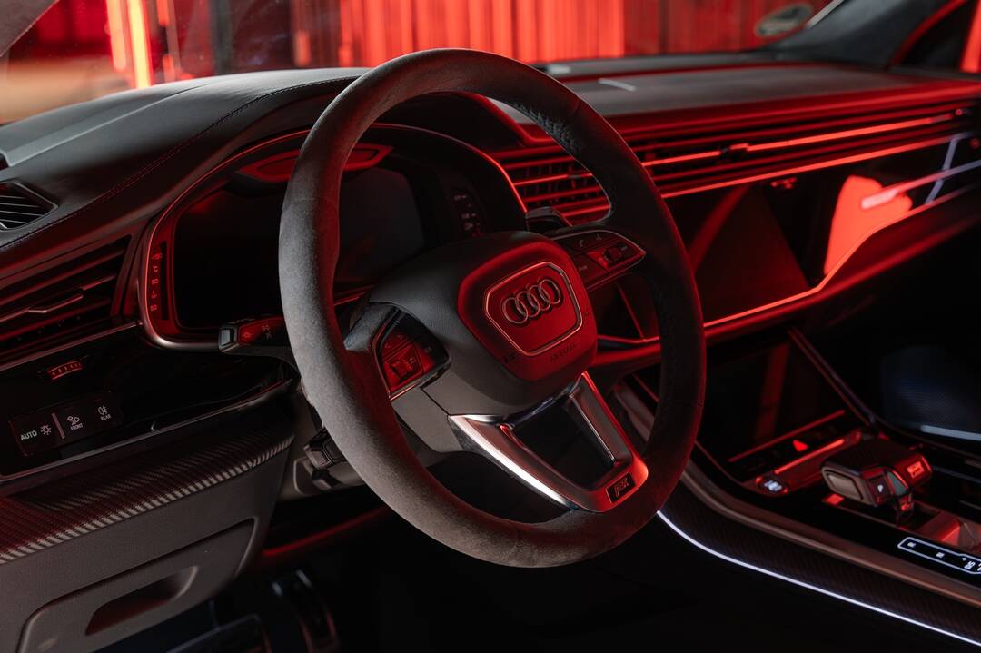 Inside, ABT Sportsline focuses on targeted refinements that subtly but clearly distinguish the RSQ8-S from the standard car. The seat refinement with ABT logo in the headrest and RSQ8-S lettering, an ABT steering wheel badge and a matt visible carbon shift knob cap form the core of the interior enhancements. These are complemented by ABT door entry lights with logo, RSQ8-S branded floor and trunk mats, RSQ8-S sill plates and an ABT start-stop switch cap. The result is a well-rounded overall package for drivers who want to give their RS Q8 a more personalised and sportily accentuated touch without fundamentally changing the character of the vehicle.