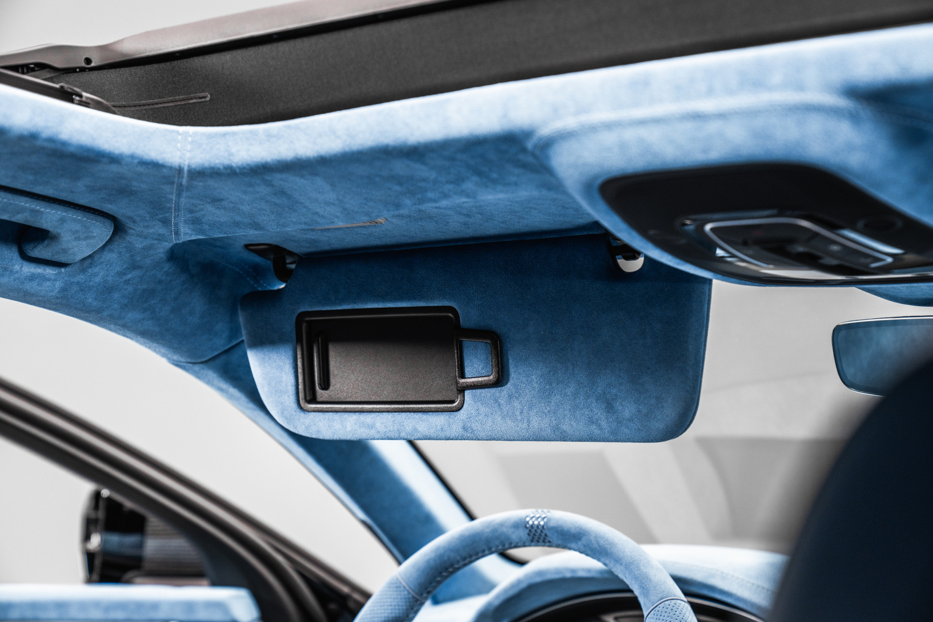 For example, a combination of leather and Alcantara, both in Shadow Blue, on the headlining, sun visors, seats, footwell and boot, dashboard and much more is an absolute eye-catcher.